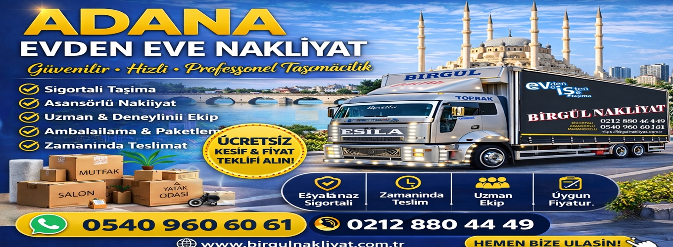 Adana evden eve nakliyat, ve taşıma hizmeti olarak şaka yapmıyordu. Evinizden eve ulaşım sağlıyoruz. Türkiye’de Birgül Türkiye’nin tüm illerinde ve ilçelerinde tüm taşımacılık sektöründeki tecrübemiz, size sunmaktan mutluluk duyacağız.
