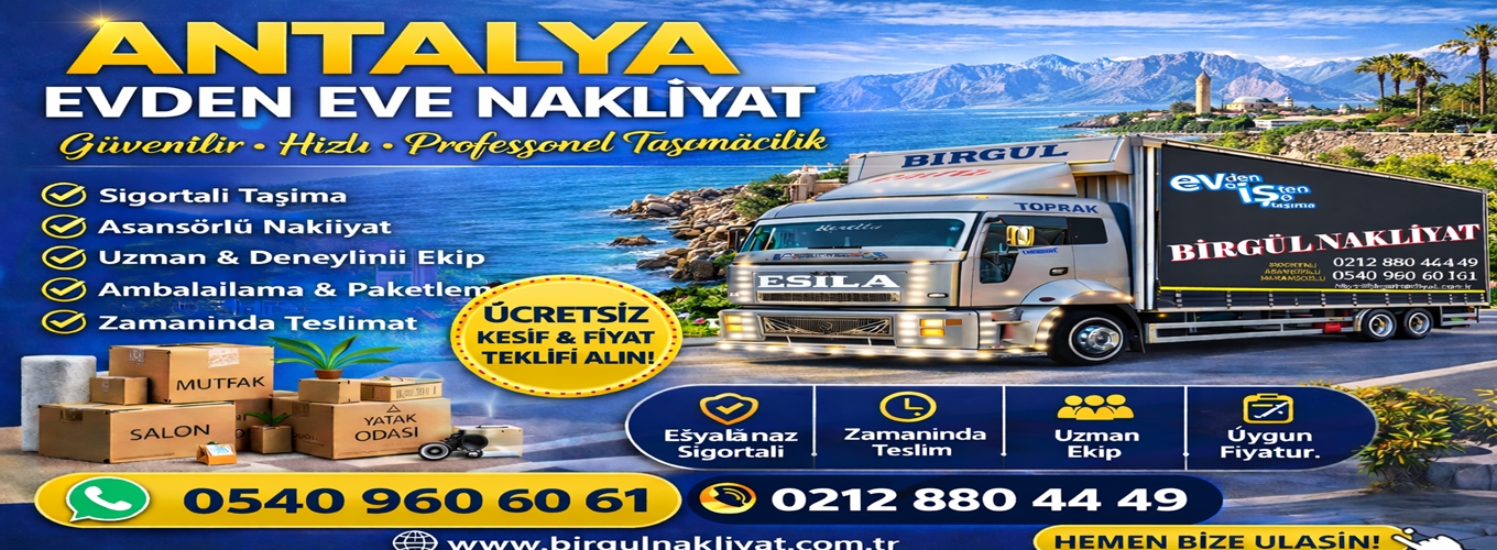 Antalya evden eve nakliyat, Ev ve ulaştırma hizmetleri ile eşyalarınızı  sorunsuz ulaştırmayı amaçlıyoruz. Evden eve nakliyat dediğimiz bu tür taşımacılık, bugün evi taşımak için en çok tercih edilen yoldur.Antalya Evden Eve Nakliyat Evinizi taşımak için en doğru adresi seçtiniz.
